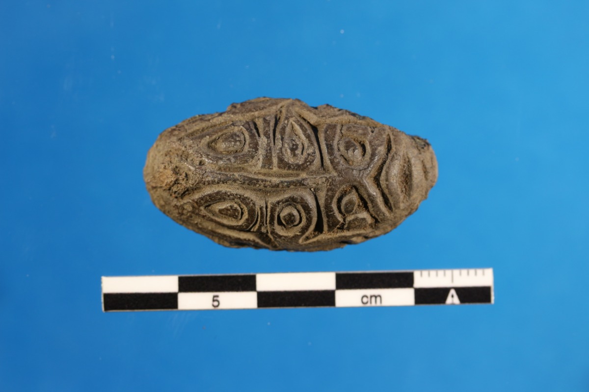 Skålspænde med motiv af liggende dyr med for,- og bagben.